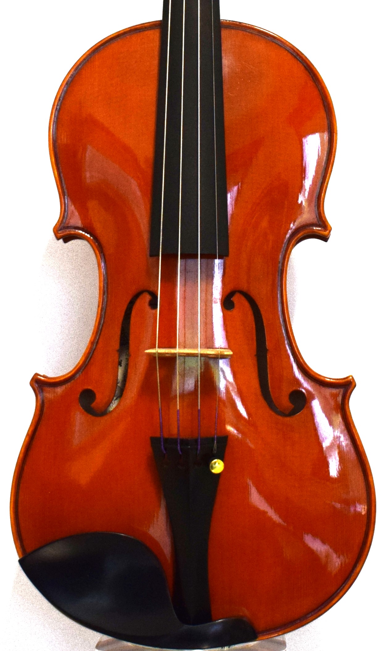 Strumento costruito su forma personale ispirato ai modelli della scuola Bisiach. Fondo in due pezzi di acero con marezzature a venatura media abbastanza regolari per tutto il fondo. Le fasce e il riccio sono dello stesso legno del fondo mentre la tavola è di un pregiato abete rosso con una venatura fitta e regolare. La vernice a base alcolica è di un caratteristico ed elegante color arancio-bruno. Suono caldo, espressivo, di alta qualità.